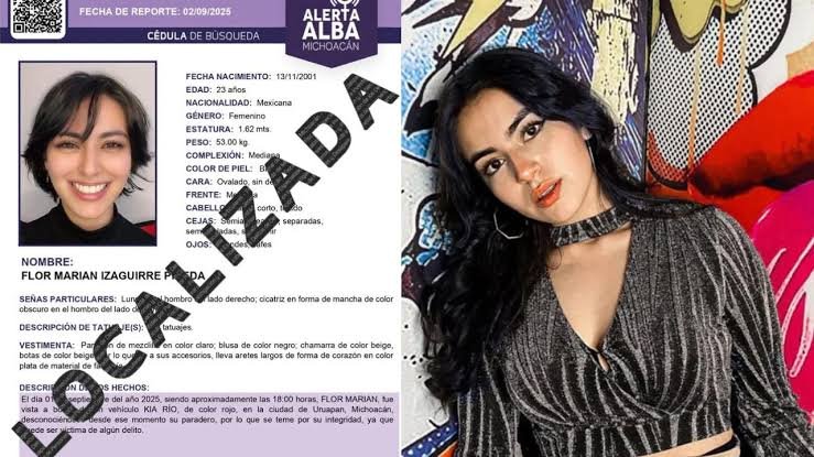 Flor Marian Izaguirre Pineda, influencer que fue reportada como desaparecida el pasado 1 de septiembre en Uruapan, Michoacán, fue localizada viva. La joven, de 23 años, fue hallada anoche en la ciudad de Morelia, según informó la Fiscalía General del…