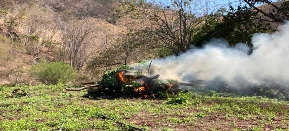 En total, se destruyeron más de 580 kilos de mariguana, otros casi cinco kg de cocaína y un monto mayor a los 67 kilogramos de metanfetamina.
