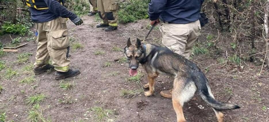 Los agentes de la Unidad Canina de la Fiscalía General del Estado (FGE) se encuentran apoyando en las tareas de localización de personas en la zona de desastre.